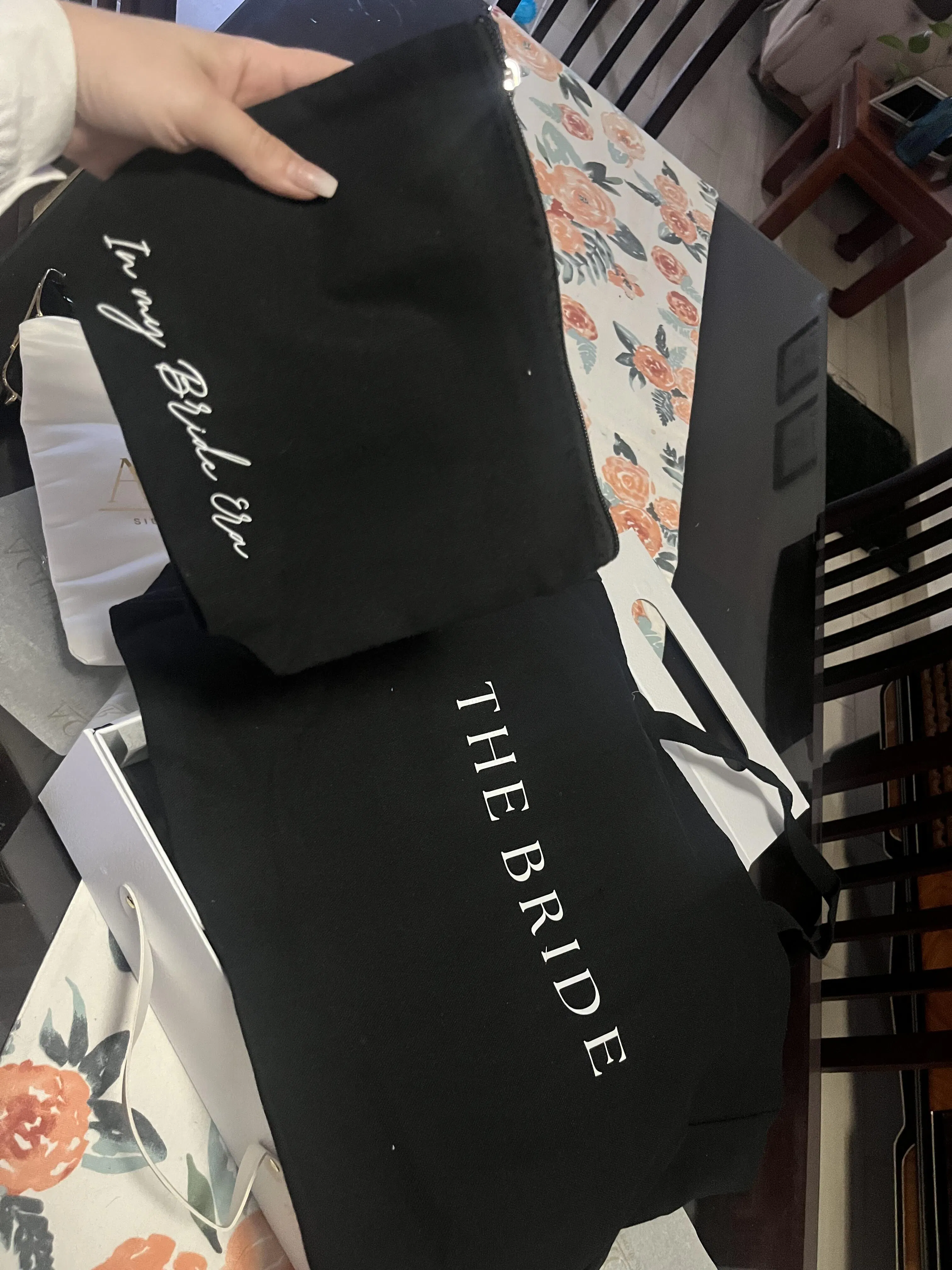 Eleva tu bridal look con nuestra increíble Tote Bag "THE BRIDE". Disponible en elegante blanco para complementar tu look de novia o en atrevido negro para darle un toque de color a tu outfit o coincidir con tus amigas en tu despedida de soltera. ¡La Tote Bag THE BRIDE siempre está en tendencia!