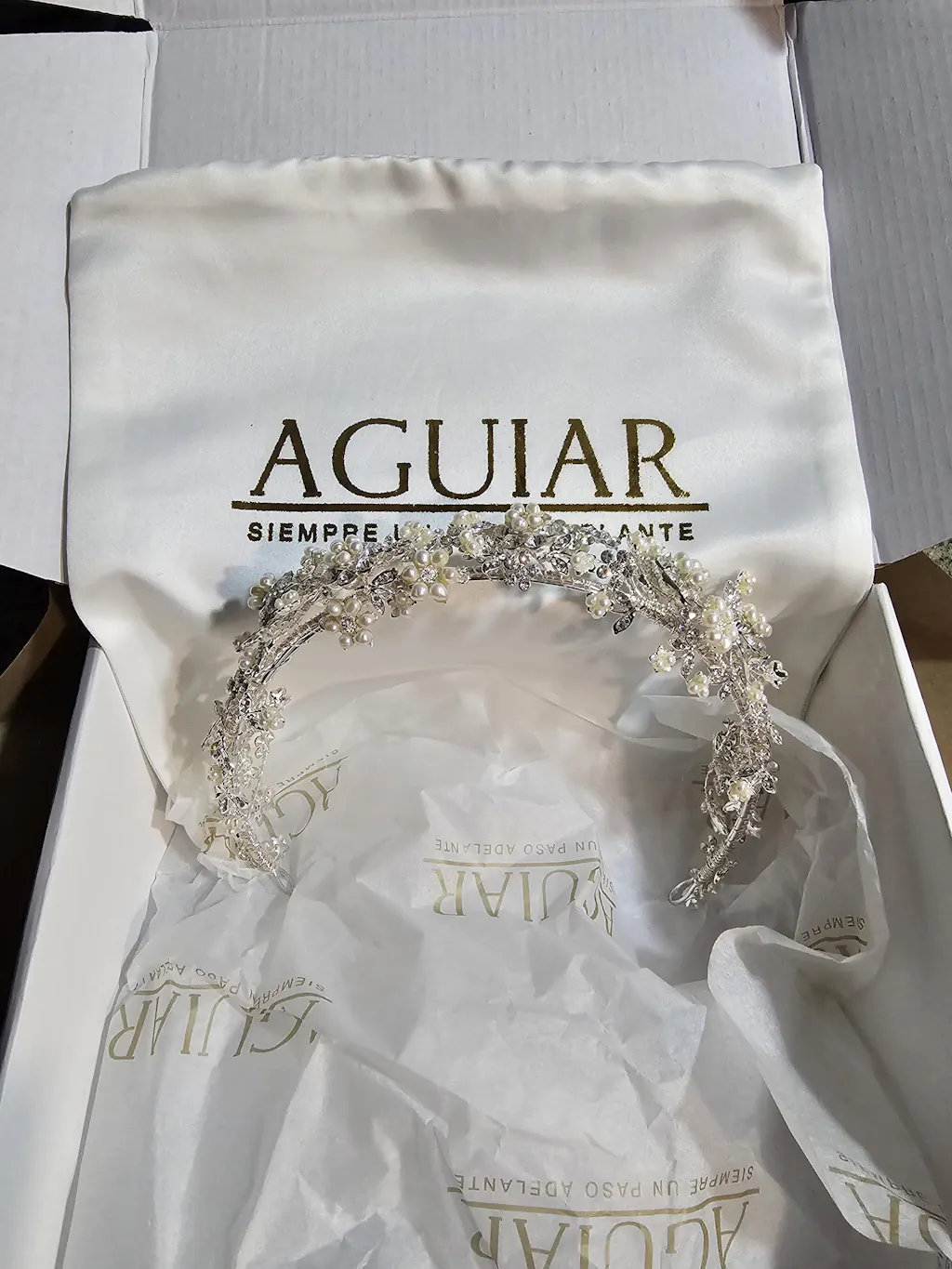 ¡Combina elegancia con brillo con la Tiara MA18!Esta preciosa tiara está chapeada en plata decorada con incrustaciones de cristal austriaco y perlas perfectamente colocadas para destacar. Un toque glamoroso para todas las ocasiones. Crea tu look perfecto con la Tiara MA18, una delicada obra maestra que destaca con brillo y elegancia. Combina cristal austriaco y perlas para un toque único de sofisticación. ¡No te resistas al deslumbrante encanto de la Tiara MA18!