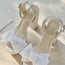 Zapatilla de novia abierta de tacón ancho con correa y moño de textil.