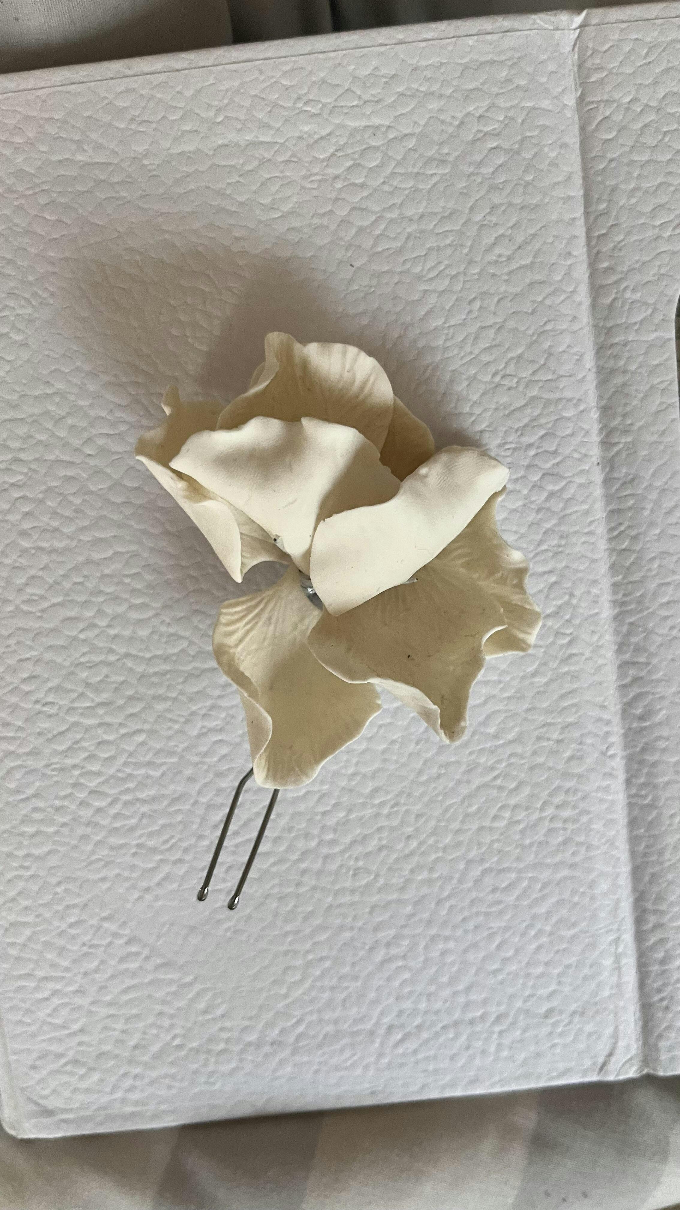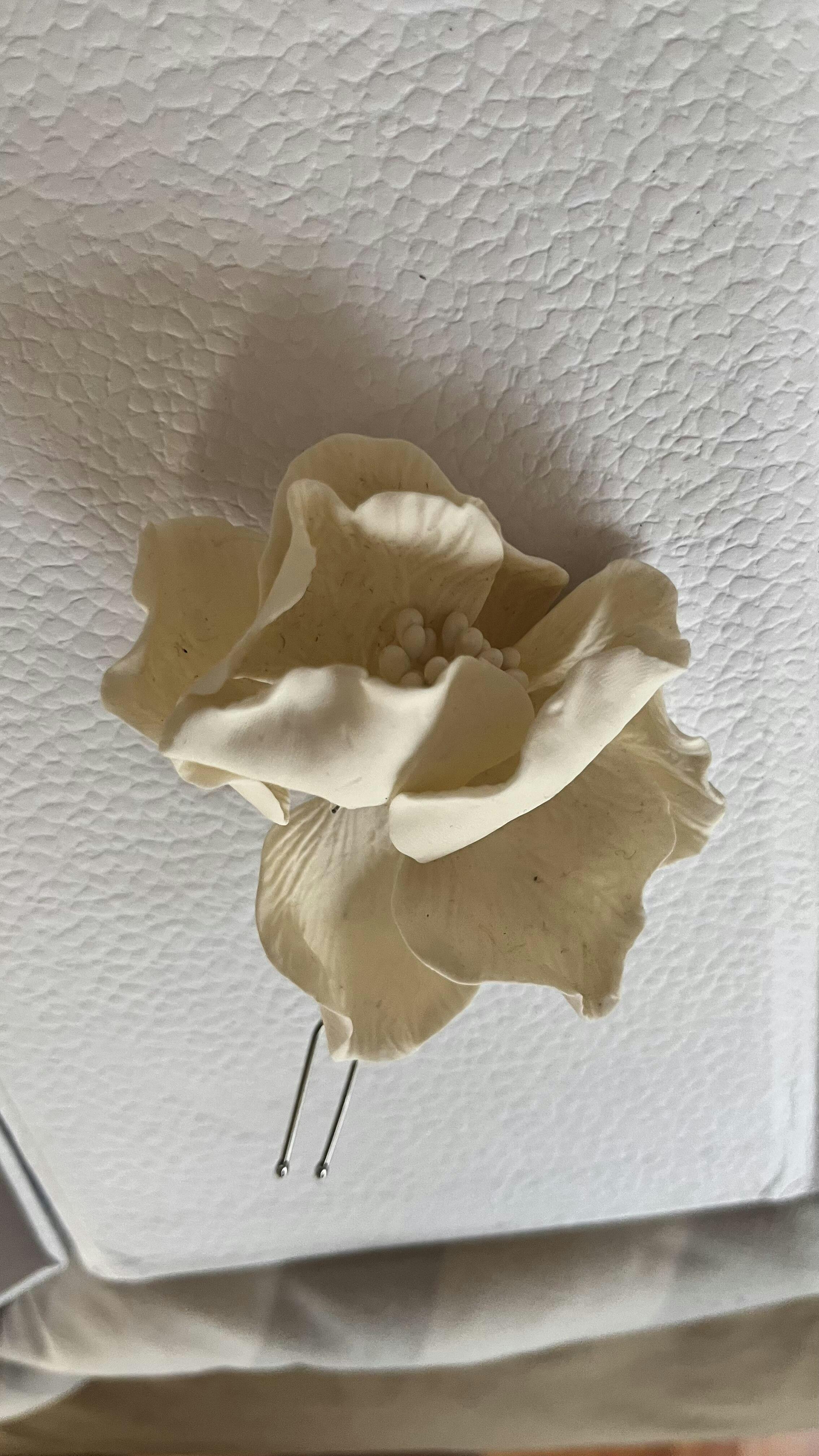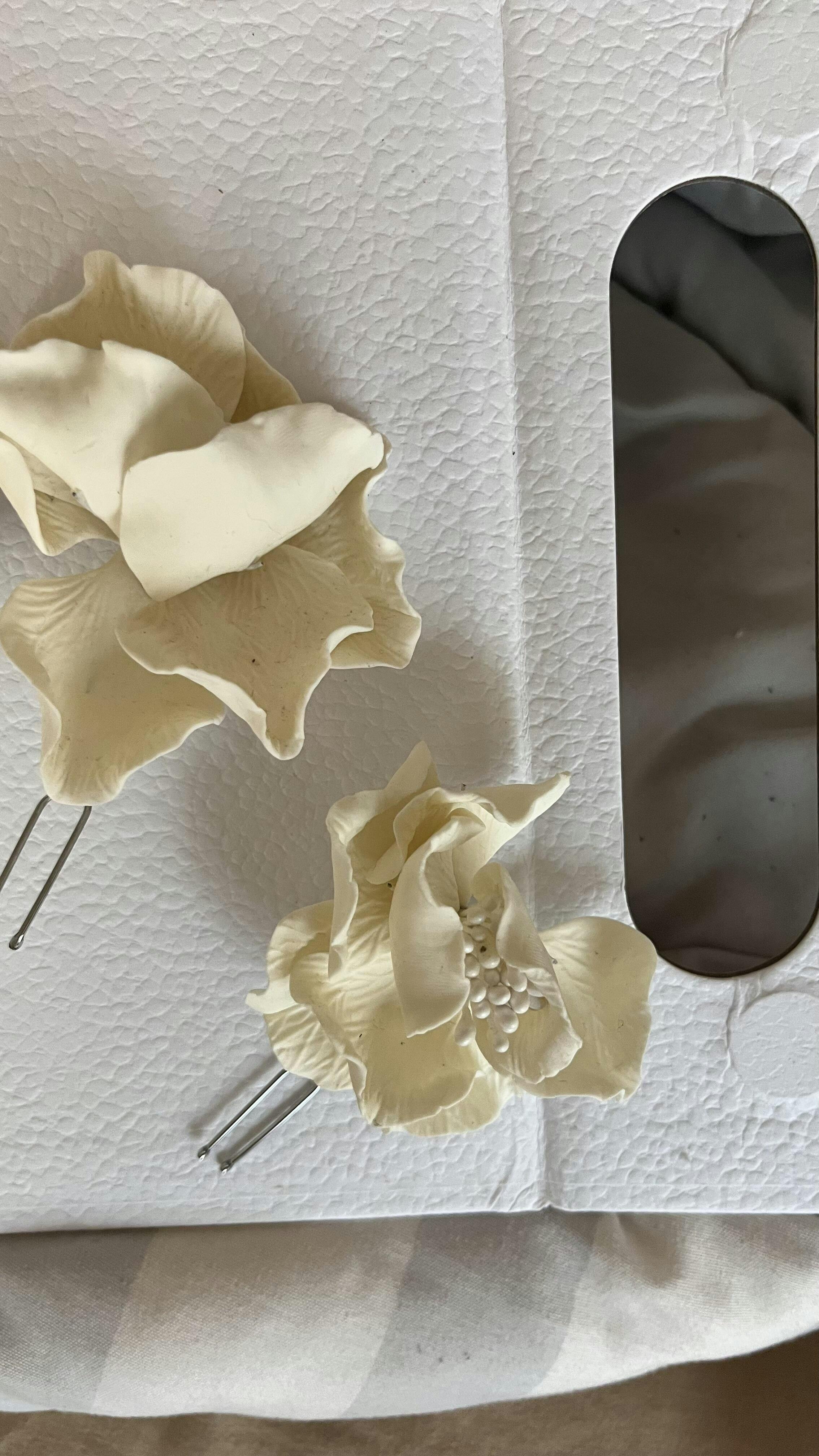 Consigue un look espectacular  y único con el Set de Horquillas Carola, elaboradas a base de pasta francesa y su centro en cera de abeja, brindaran este toque final que buscas para tu bridal look.