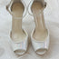 Zapatilla de Novia con media plataforma y correa en tobillo, lleva un acabado tornasol y punta abierta.